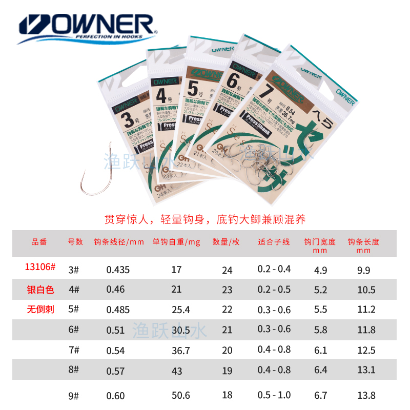 淘宝日本原装进口鱼钩欧娜钓鱼钩银色袖钩轻口猾鱼10808寒期底钓13106
