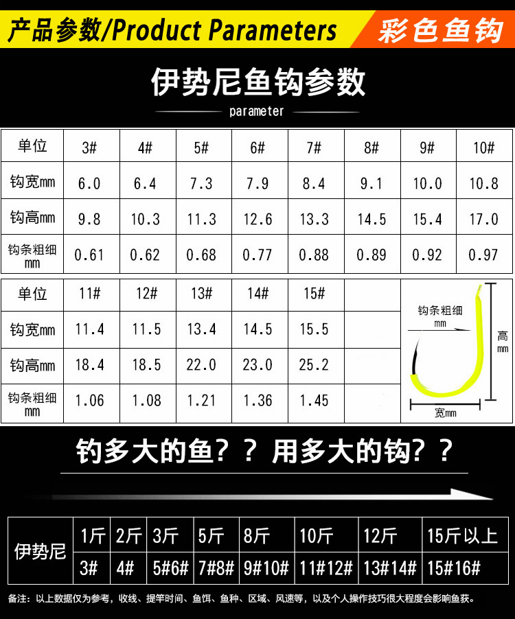 淘宝10枚袋荧光黄彩色伊势尼鱼钩5H高碳钢伊豆钩有倒刺钓鱼钩垂钓用品