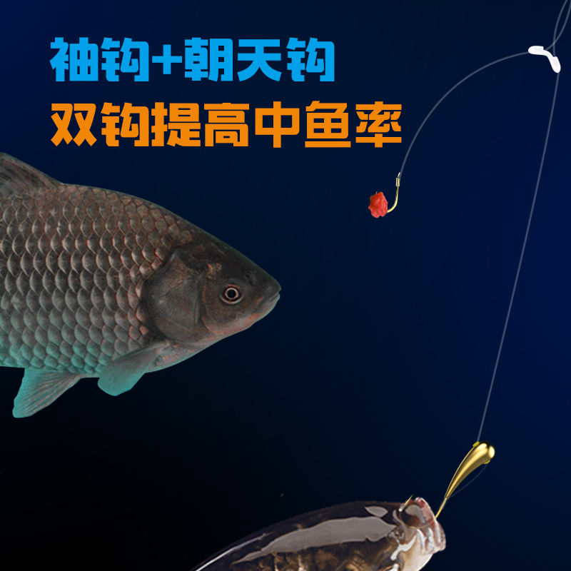 淘宝鹤渔人朝天钩七星漂线组双钩正品圆柱免调漂金海夕鲫鱼专用钓鱼线