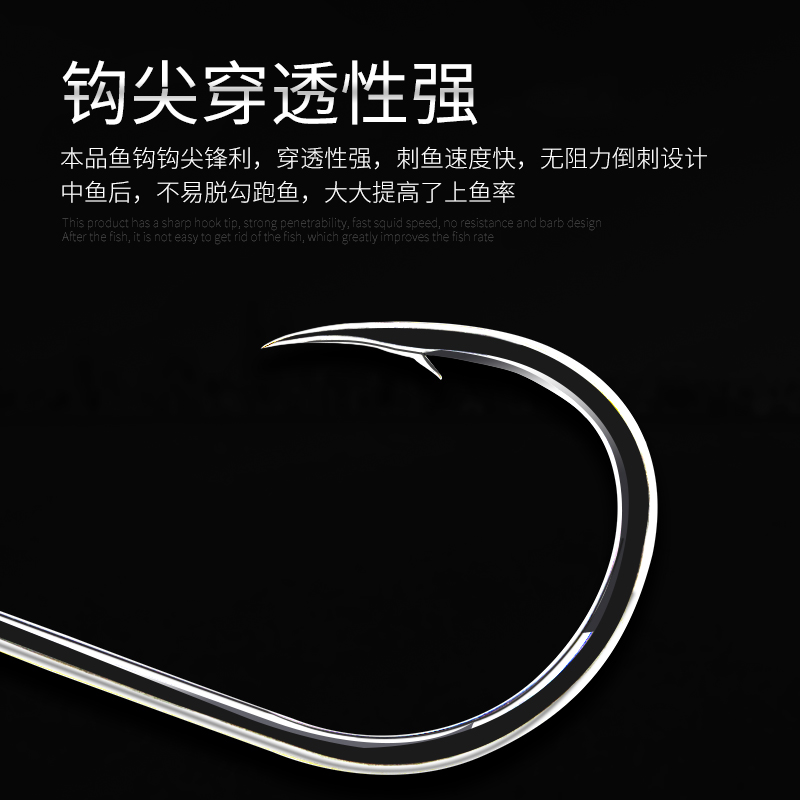 淘管付伊势尼鱼钩有倒刺散装歪嘴管付鱼钩海钓钩带圈孔钓鱼钩黑鱼钩