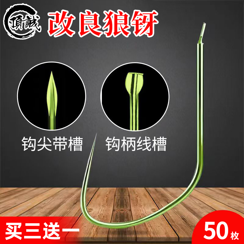 淘宝竞技改良狼针牙钓鱼钩极细条超轻合金黑坑狼牙鲫鱼鲤鱼混养线槽