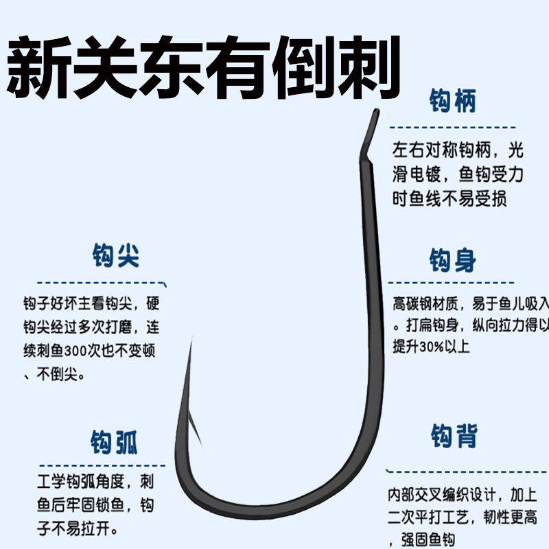 淘宝新关东有倒刺歪嘴鱼钩日本进口高碳平打邓刚鲢鳙钓组推荐黑坑散装