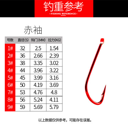 天环盛正品红袖鱼钩散装日本进口鲫鱼细条平打高碳钢袖钩赤袖钓鱼钩