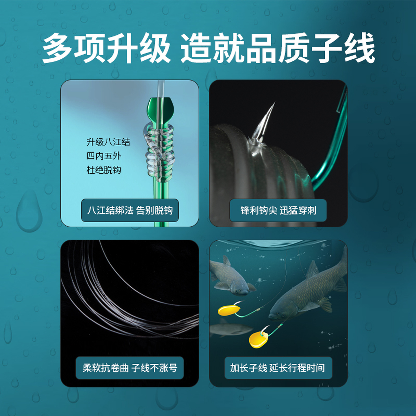 天猫詹品草鱼加长子线鬼牙伊势尼大物有倒刺成品子线双钩珠珠钓鱼仕挂