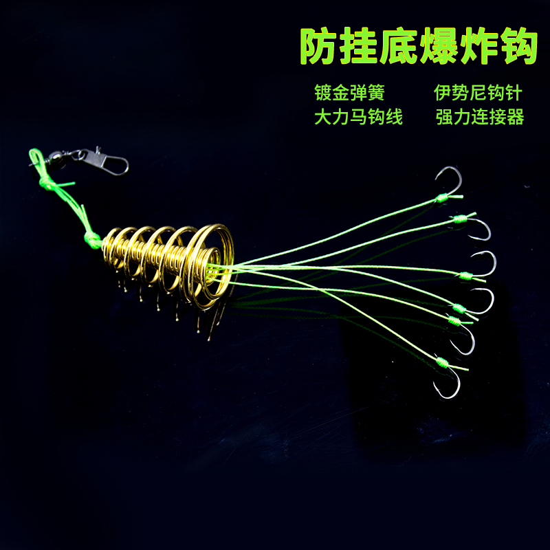 天猫新款防挂底爆炸钩伊势尼鱼钩套装弹簧炸弹钩抛竿海竿钓组钓鱼神器