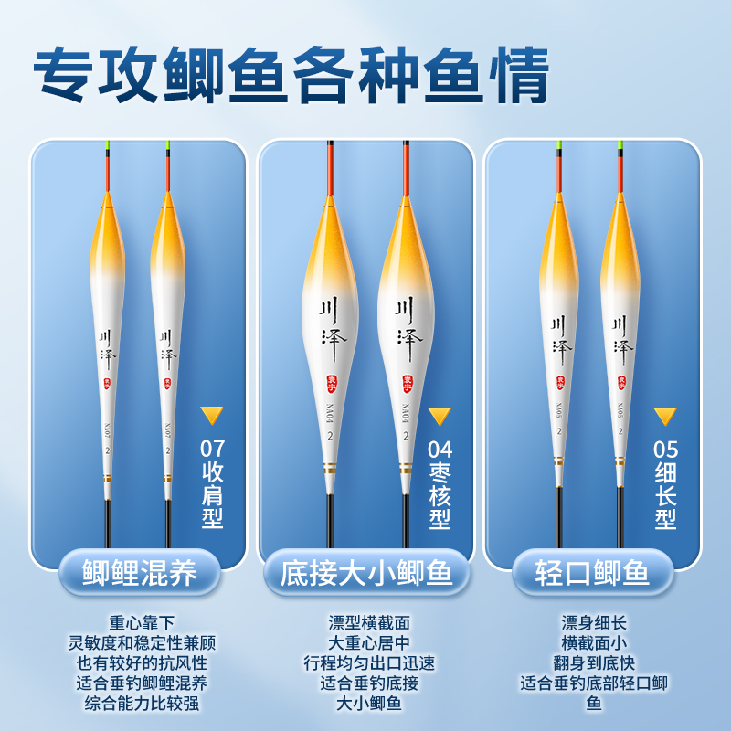 天猫川泽轻口鲫鱼漂高灵敏醒目专攻野钓行程轻口浅水湖库纳米浮漂正品