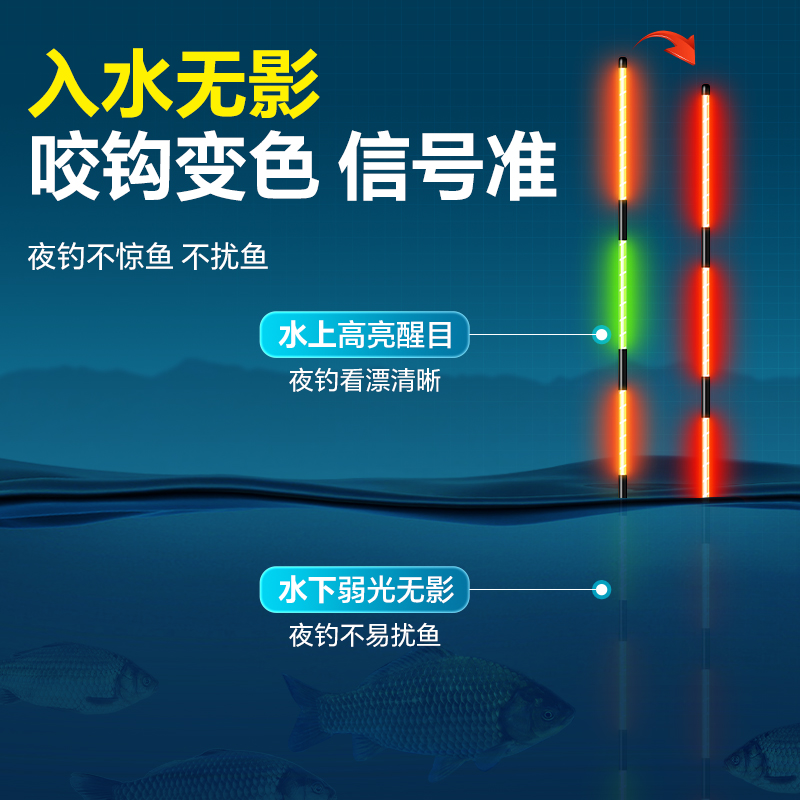 天咬钩变色芦苇夜光漂鲫鲤罗非重力感应夜钓鱼漂超亮水无影电子浮漂