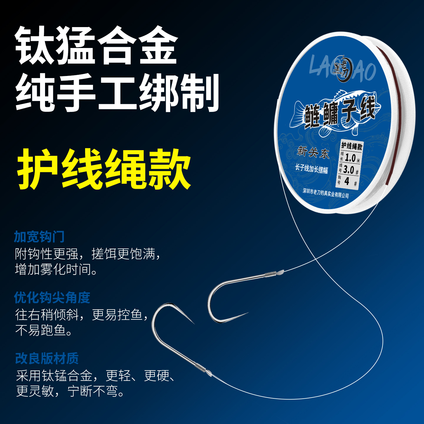 天猫老刀鲢鳙加长子线双钩绑好成品草鱼鲢鳙关东钩护线绳加固钓鱼对钩