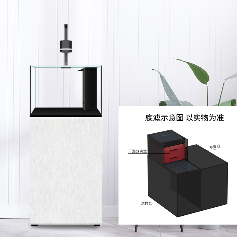 天猫迪顺2025新款客厅60方形底滤溪流鱼缸超白玻璃兰寿金鱼水族箱家用