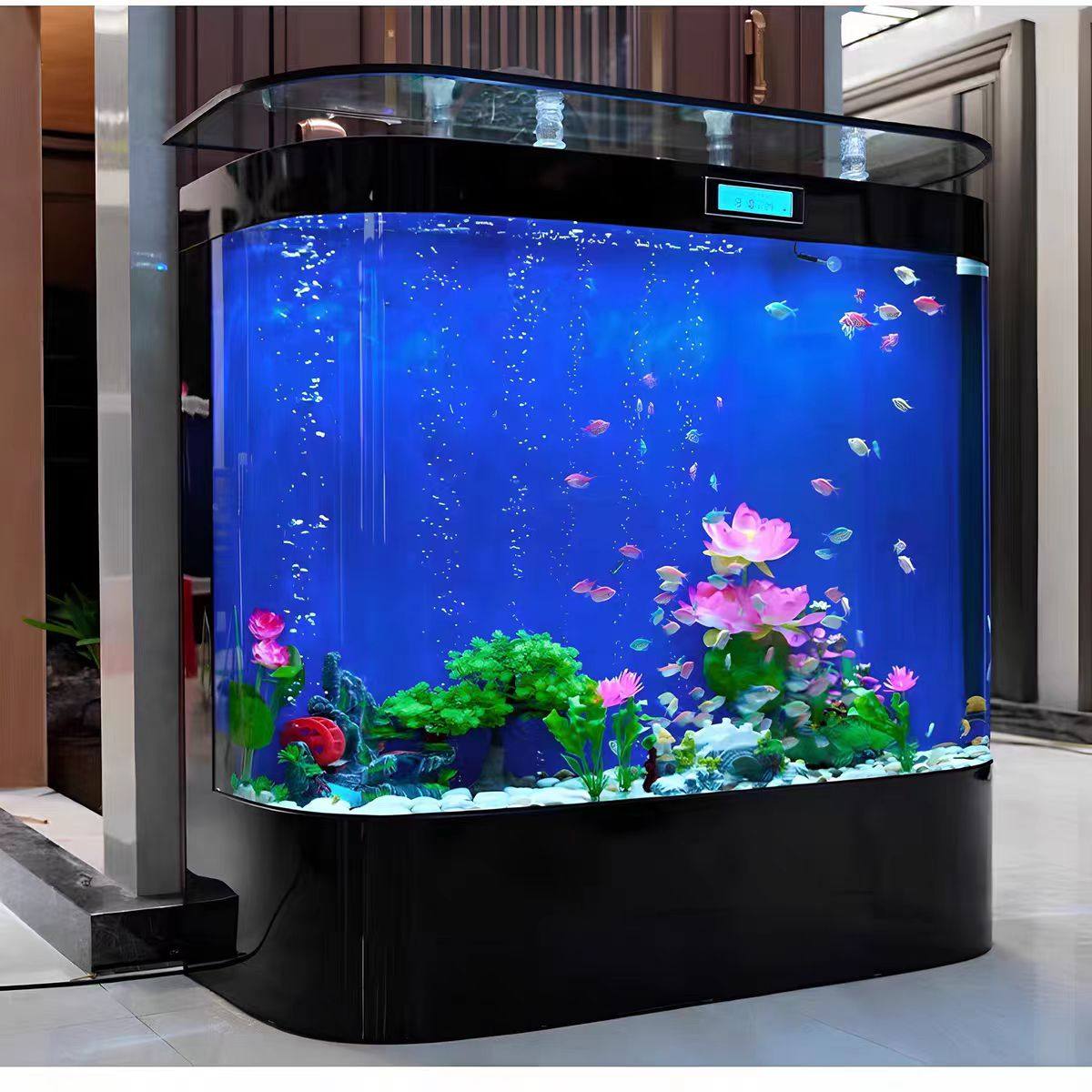 2025年全新推出的免换水落地客厅家用水族箱,专为现代家庭设计,集美观与智能于一体。采用高强度超白玻璃打造,通透性强,搭配极简边框,完美融入客厅、玄关等空间。创新生态过滤系统与自动补水技术,实现真正“免换水”,维护轻松省心。内置智能LED照明,支持多模式调光,营造梦幻水景氛围。大容量设计(约300-500L),适合靠墙摆放,提供充足水体空间,饲养观赏鱼与水生植物皆宜。配备手机APP远程监控水质、温度与灯光,科技感十足。静音运行,安全节能,是提升家居格调与健康生活方式的理想之选。