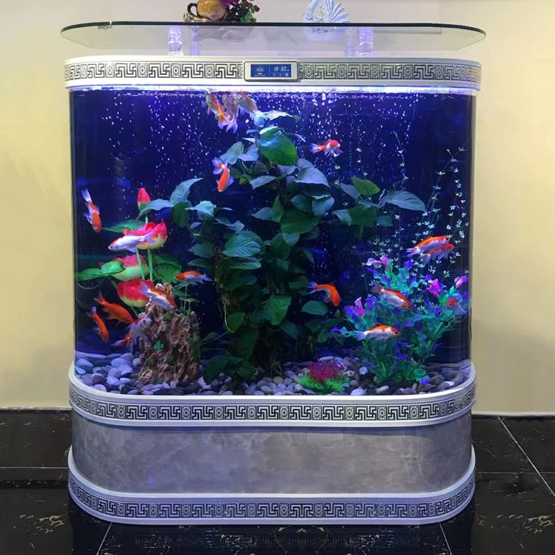 淘宝2025新款双圆形鱼缸客厅中小型家用落地靠墙背滤一体式玻璃水族箱