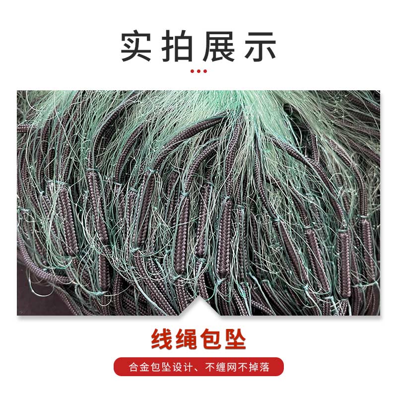 商品介绍:这款渔网粘网加重绳包坠三层绿丝网沉网,是一款高效的捕鱼工具。它采用三层丝网设计,不易缠网,方便挂网。其特殊加重绳包和坠子设计,能确保渔网迅速沉入水底,提高捕鱼效率。这款渔网适用于捕捞鲫鱼、鲤鱼等多种鱼类。其绿色丝网设计不仅有利于隐蔽,更能有效捕捉猎物。无论是专业渔民还是钓鱼爱好者,这款渔网都是您捕鱼的最佳选择。