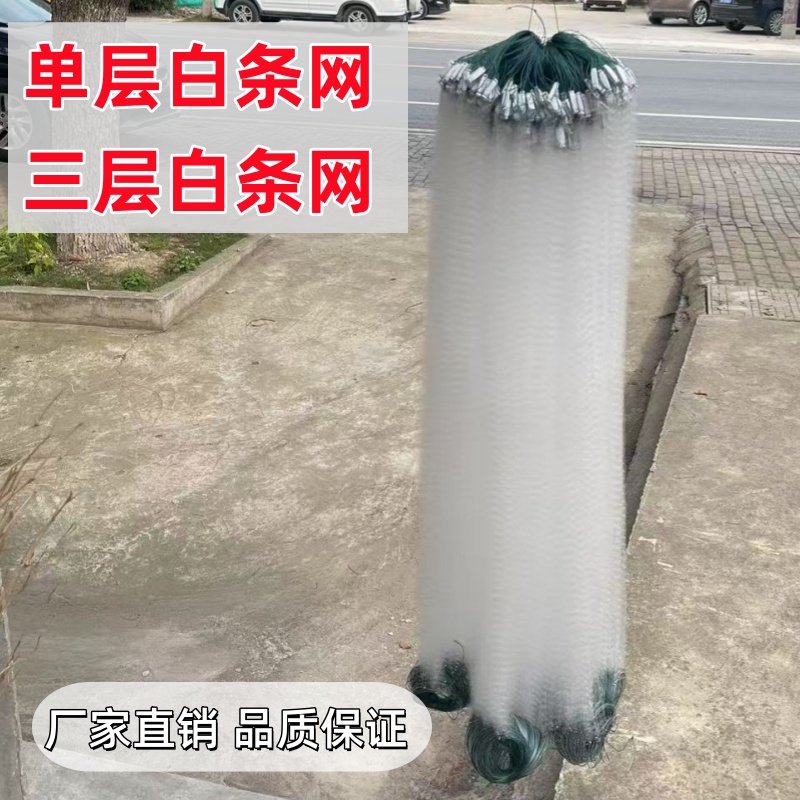 淘三层1指沉网白丝20-100米长白条捕鱼网长2.5指3-6指鲫粘丝网渔网