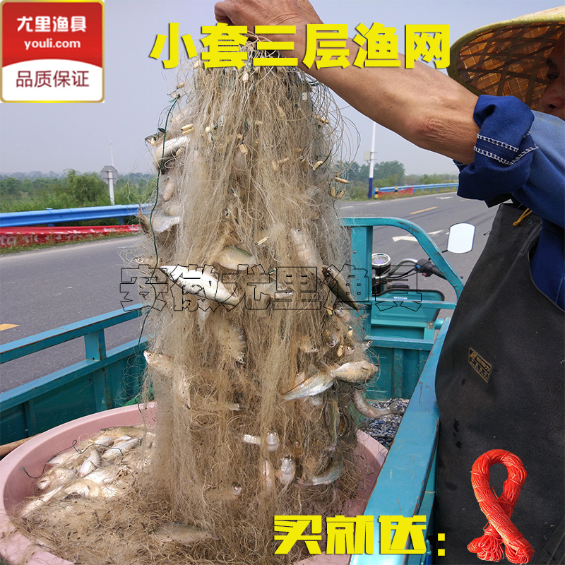 淘宝三层渔网沉网小套进口丝网粘网鱼网捕鱼网粘鱼网白条加重加密挂网