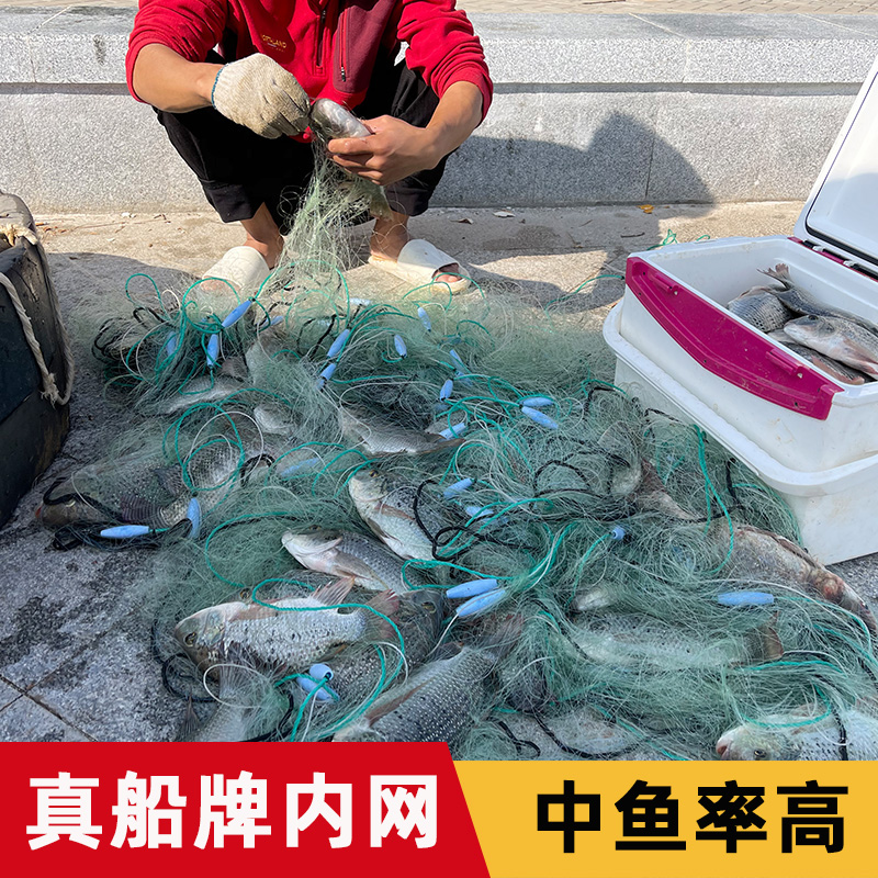 天猫爱渔人进口正品船牌丝捕鱼网粘网三层水库抓鱼网防缠细丝加重沉网