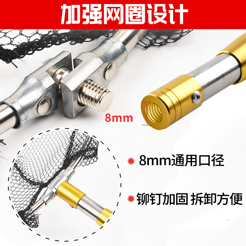 实心抄网头可折叠不锈钢网兜手工编织大力马便携大物抄鱼网圈连接