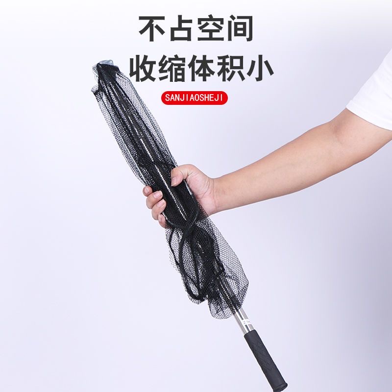 淘宝三角一体不锈钢抄网自动折叠捞鱼网伸缩定位便携操网实心渔具用品