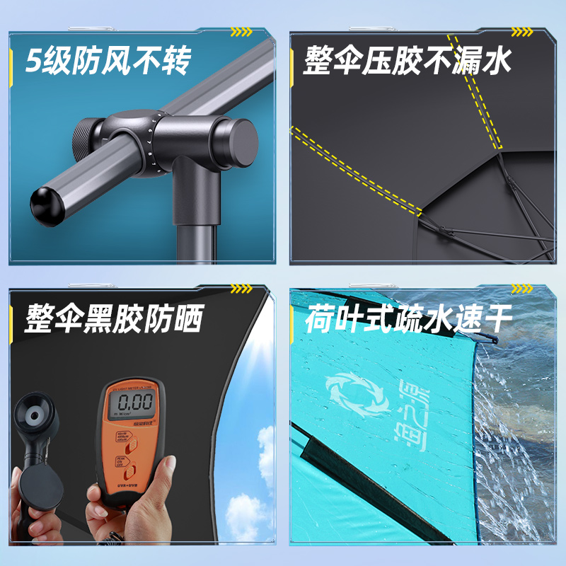 渔之源钓鱼伞新款户外露营遮阳伞便携式黑胶防晒野餐露营车专用伞