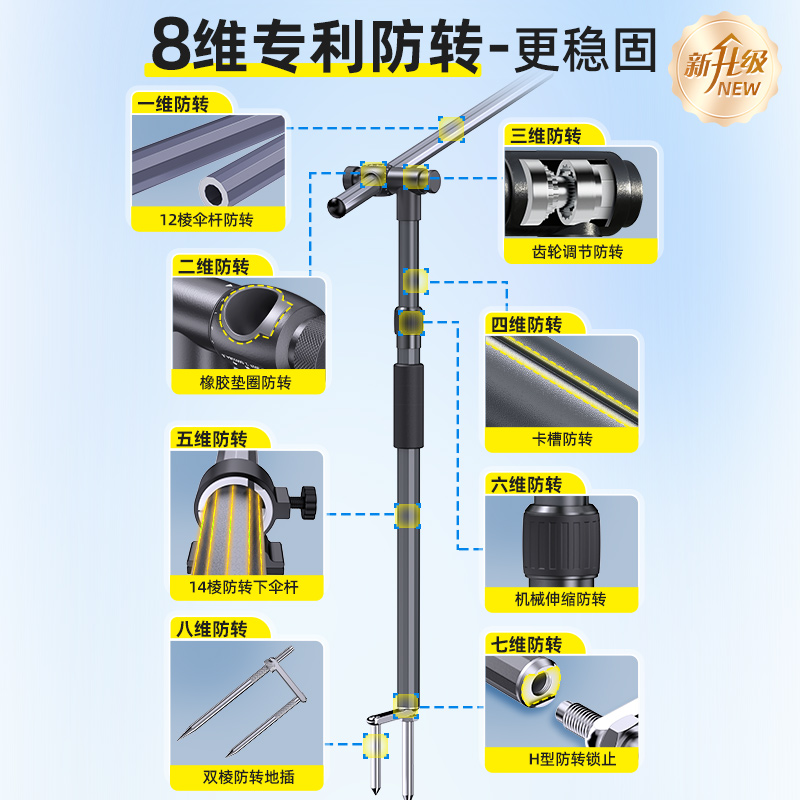 天一帆精工新款2.4米钓鱼遮阳伞拐杖双弯机械臂多向调节防雨钓伞