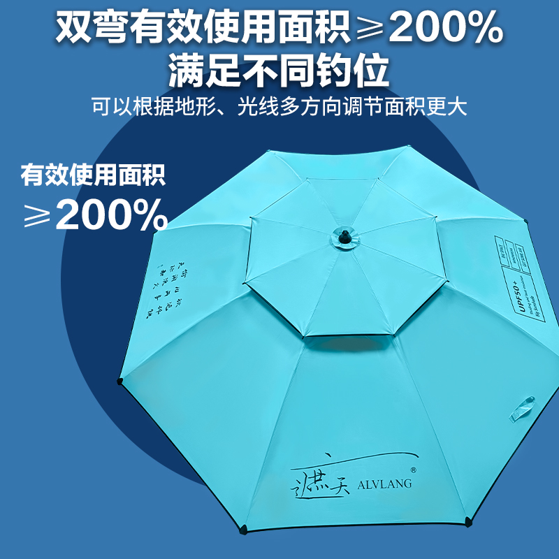 天猫ALVLANG阿驴郎2024新款遮天加厚黑胶钓鱼伞户外遮阳加固拐杖钓伞