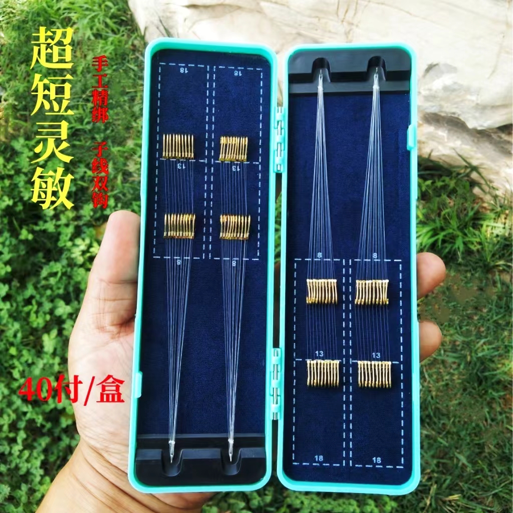 50副盒装成品金袖鱼钩套装 手工绑好的子线双钩 台钓鱼鲫鱼钩套装