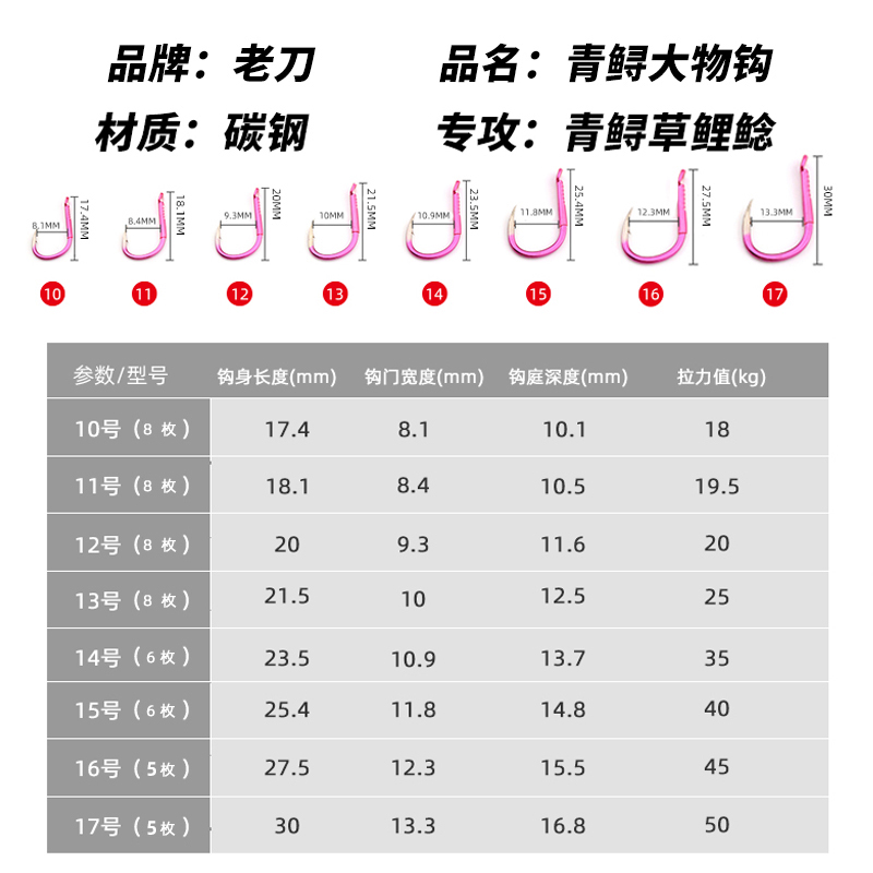 商品介绍:这款散装青鱼鲟鱼大物钩是超轻硬巨物钩,适用于海钓、锚鱼等多种钓鱼场景。其伊势尼有倒刺设计,能够有效防止鱼儿脱钩,提高钓鱼成功率。该钩子采用优质材料制作,具有超强的耐腐蚀性,能够应对各种复杂水域环境。此外,它还拥有超高的灵敏度和强度,可以轻松应对大型鱼类的挣扎,让你享受刺激的钓鱼体验。无论是专业钓鱼人士还是钓鱼初学者,这款大物钩都是你的理想选择。