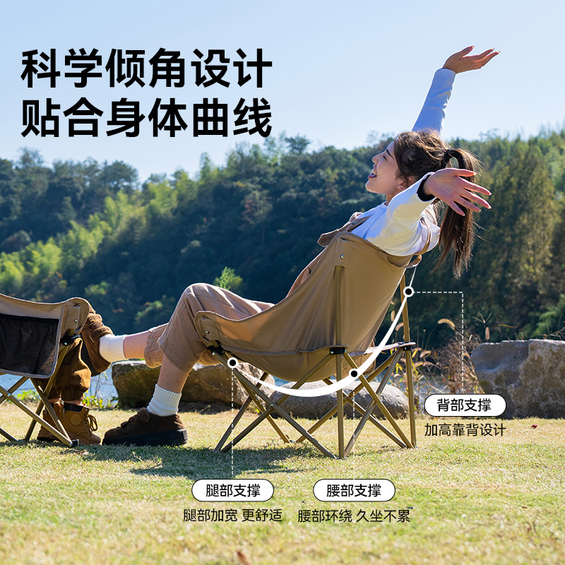 问露户外折叠椅加高月亮椅可调节露营椅便携式椅沙滩钓鱼野餐椅凳