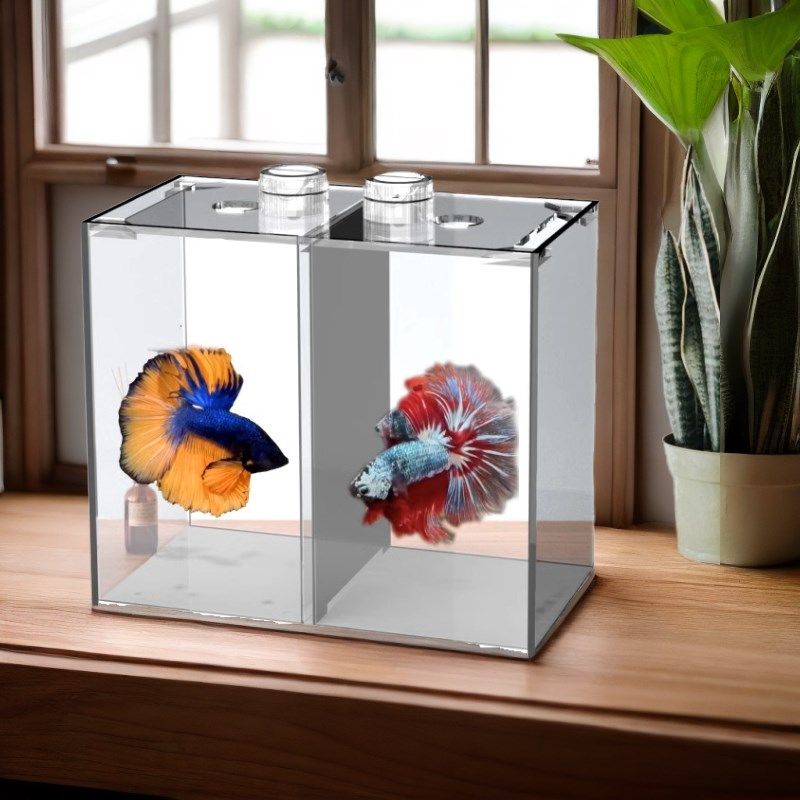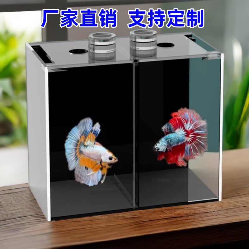 淘宝亚克力泰国斗鱼缸有机玻璃桌面办公室小型观赏鱼缸水族箱双格多格