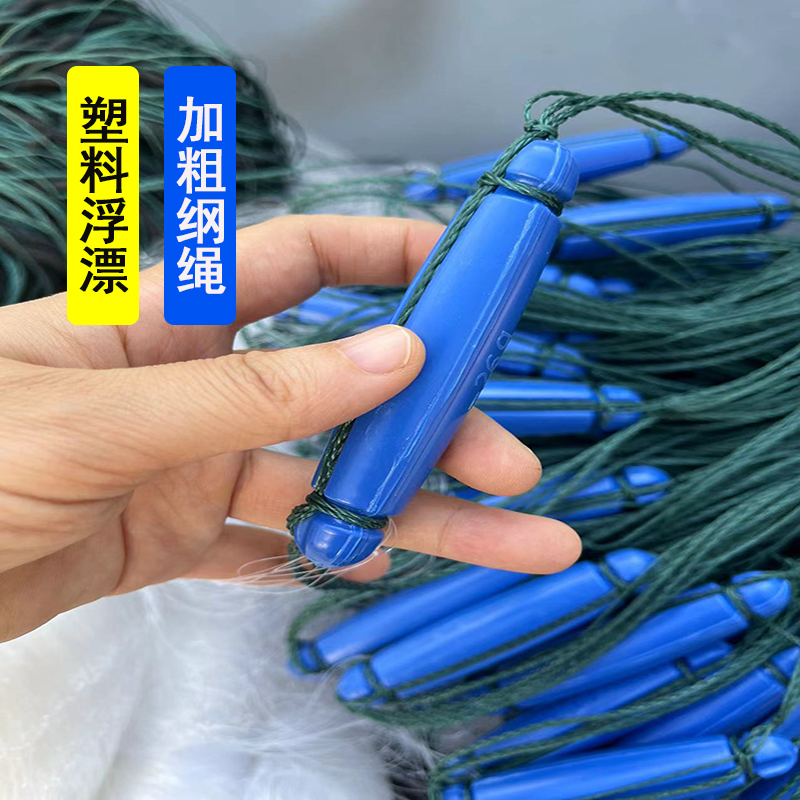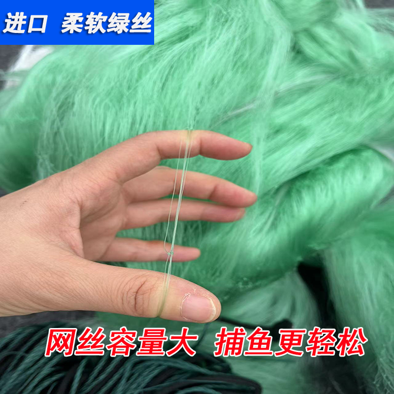 淘宝绿丝三层渔网沉网8米10米15米20米高粘网捕鱼网丝网塑料浮漂绳坠