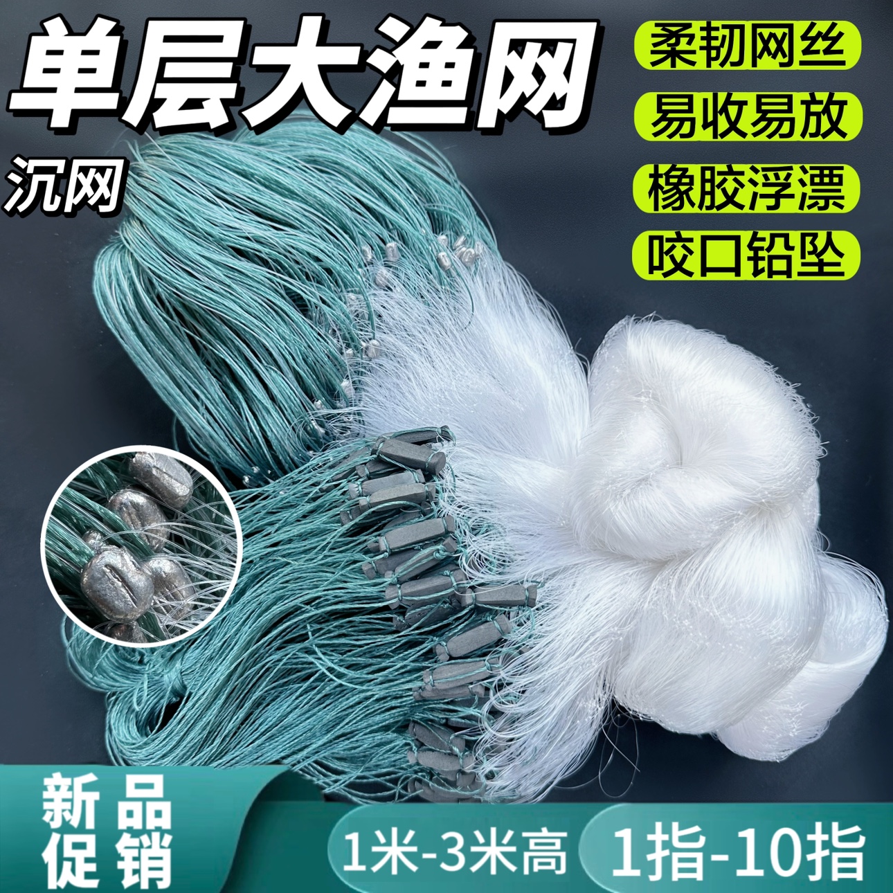 淘宝单层大鱼网进口超细白丝柔丝粗丝鲫鱼鲤鱼花鲢沉网沾鱼网一层手工