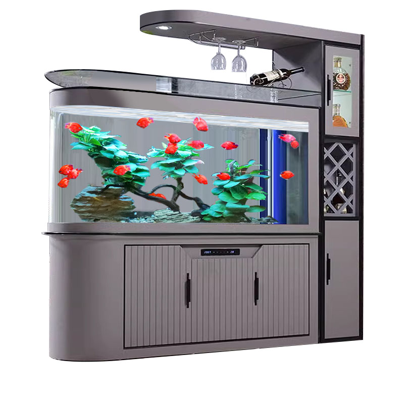 天猫酒柜鱼缸客厅大型轻奢玻璃水族箱落地家用智能玄关屏风2025新款