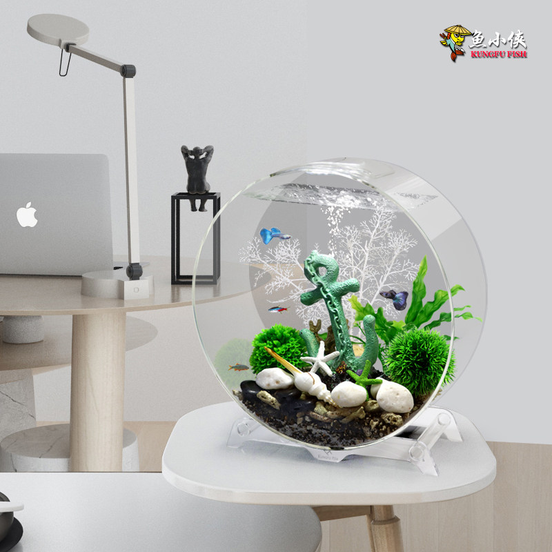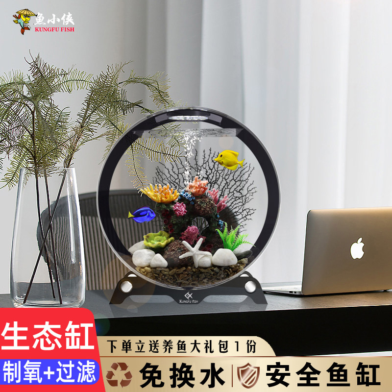 淘宝鱼小侠桌面鱼缸过滤制氧一体机客厅家用水族箱生态懒人造景装饰箱