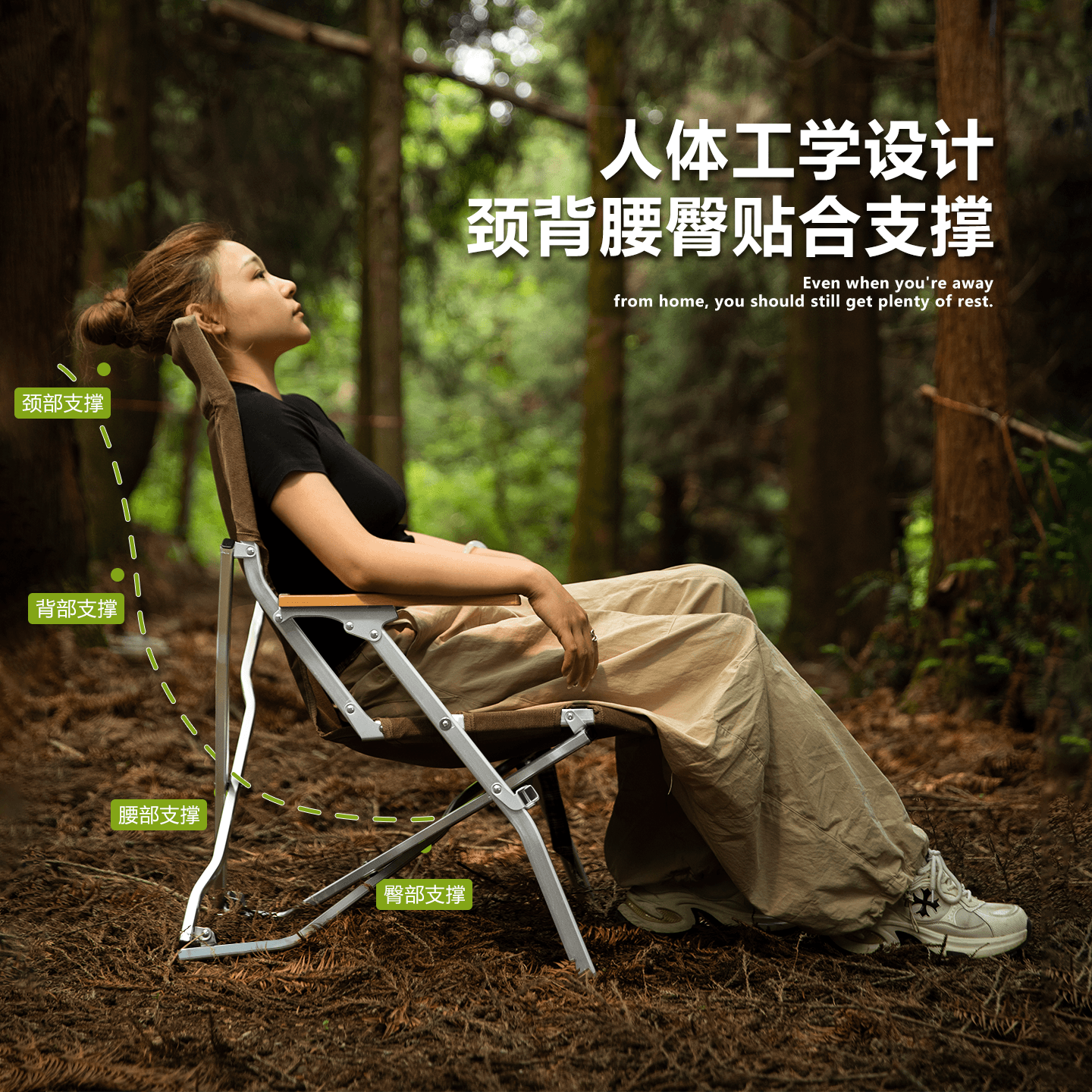 天户外折叠椅加高月亮椅露营椅子便携板凳钓鱼沙滩躺椅野餐桌椅装备