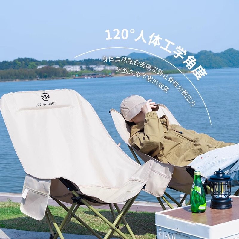 露营月亮椅户外折叠椅子凳钓鱼沙滩躺椅野餐野外成人坐躺便携式