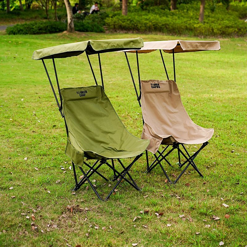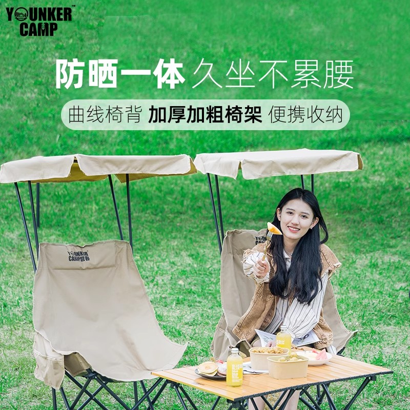 淘宝户外遮阳棚折叠椅加高靠背月亮椅带伞防晒钓鱼椅露营野餐沙滩椅凳