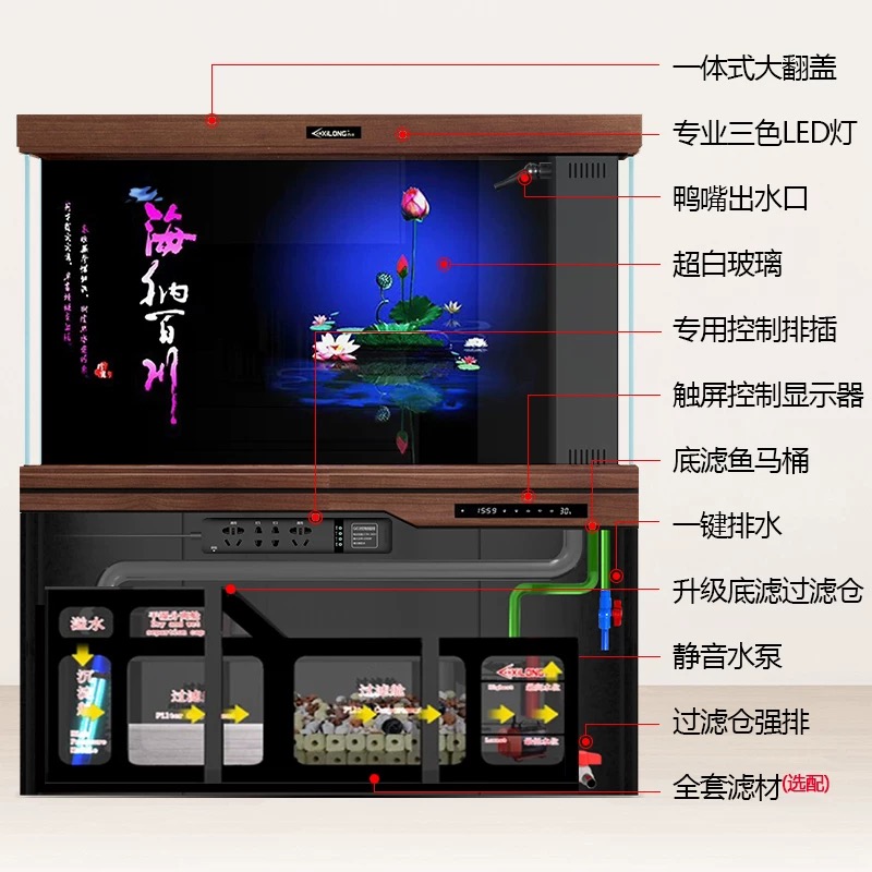 负压鱼缸过滤制氧一体机小型客厅2025新款生态造景家用桌面金鱼缸
