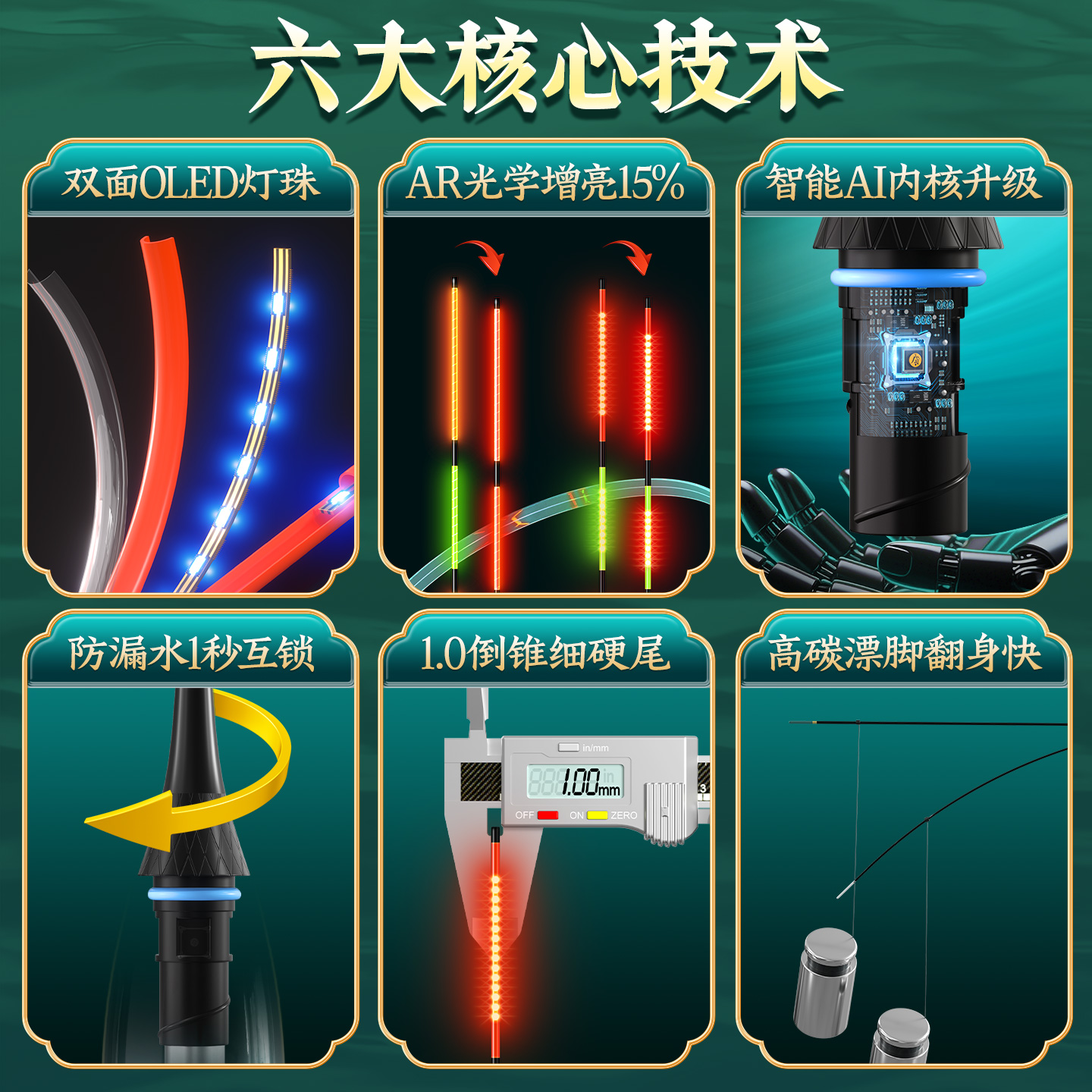 川泽轻口鲫鱼夜光漂OLED一体高灵敏浮漂硬尾清风竹影EQ电子漂鱼漂
