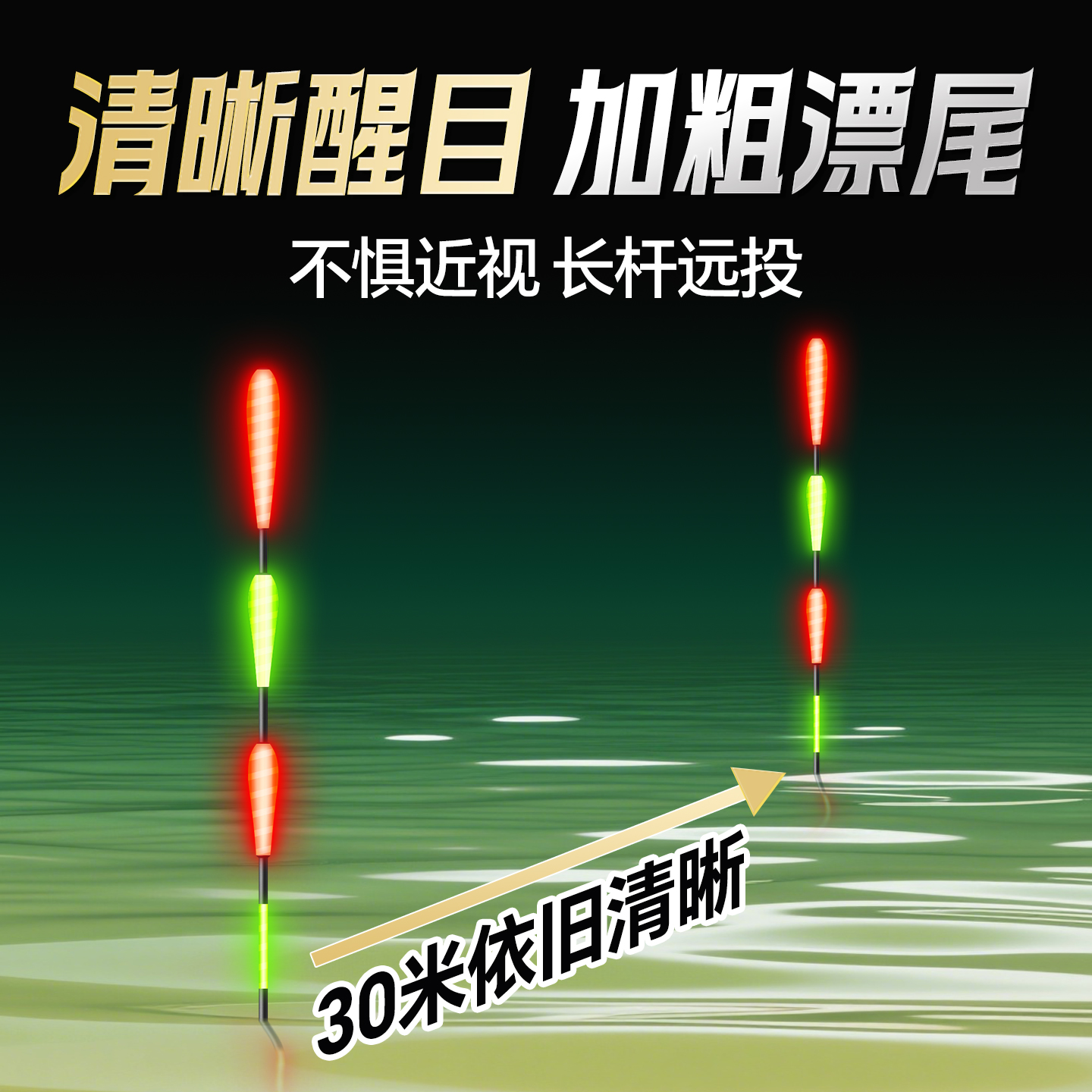 淘川泽水晶尾一体互锁夜光漂咬钩变色日夜两用鱼漂高灵敏浮漂电子漂