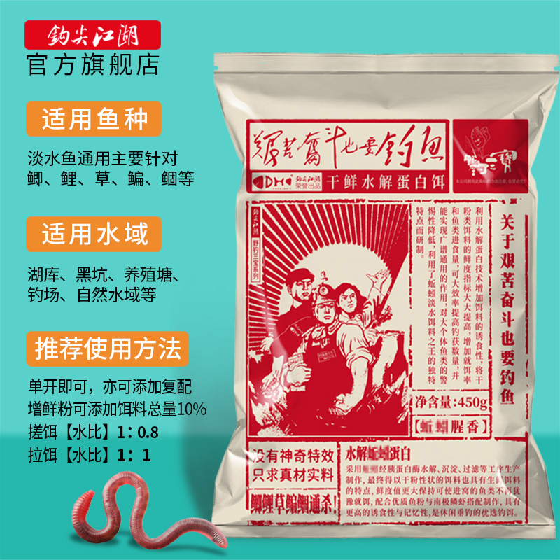 天猫艰苦奋斗钓鱼饵料水解蚯蚓蛋白鱼饵野钓鲫鲤鱼专用鲢鳙鱼食打窝料