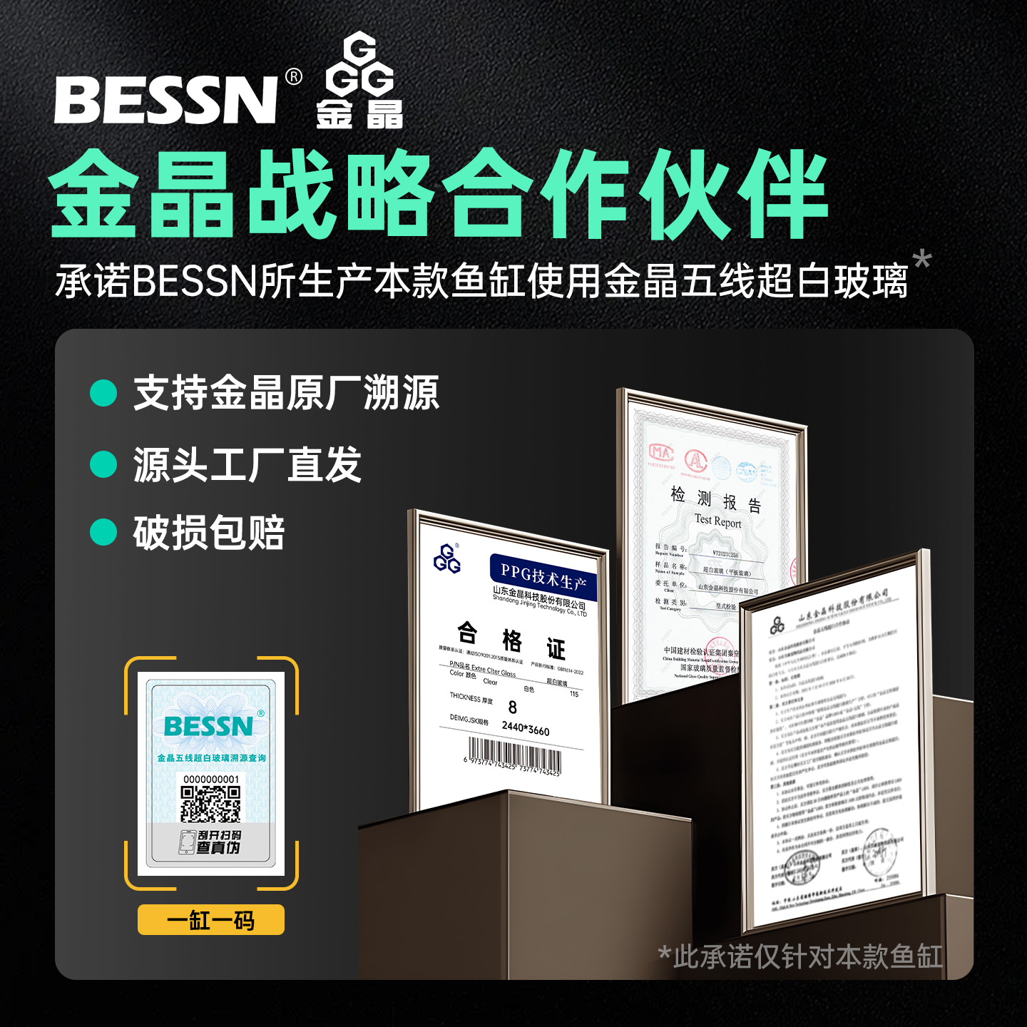 天猫BESSN贝森血脉觉醒侧滤鱼缸客厅干湿分离金晶五线超白生态溪流缸