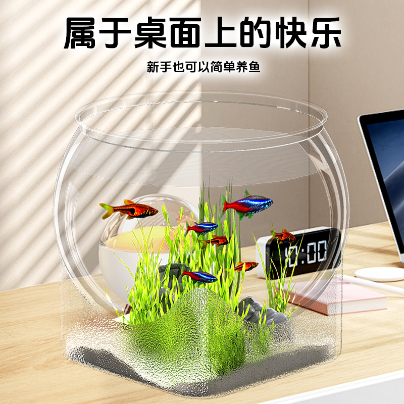 天猫防摔桌面透明方底圆缸办公室方底客厅书房造景摆件微景观观赏鱼缸
