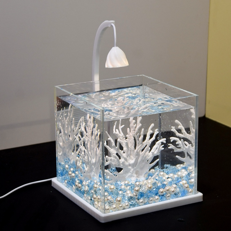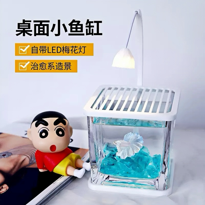 斗鱼适用缸小型网红创意造景玻璃缸桌面观赏小夜灯装饰生态养鱼缸