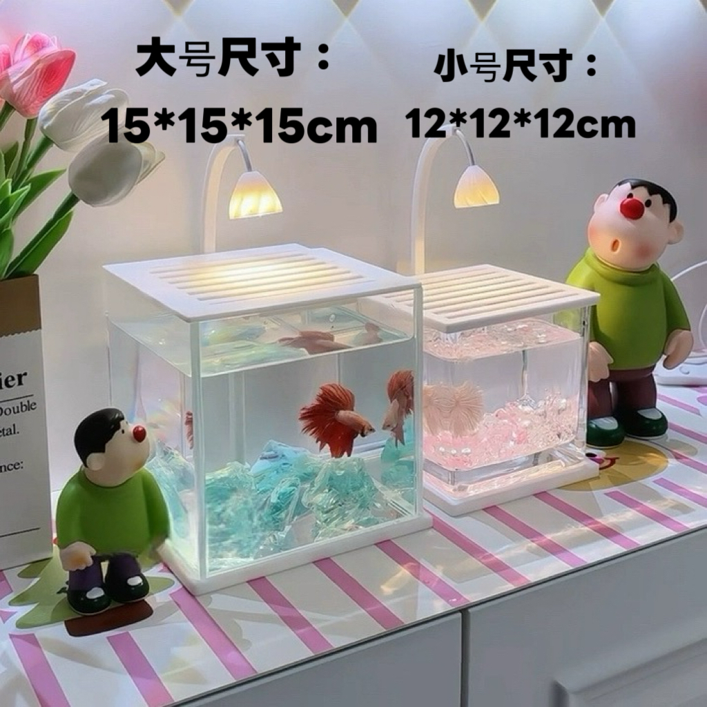 淘斗鱼适用缸小型网红创意造景玻璃缸桌面观赏小夜灯装饰生态养鱼缸