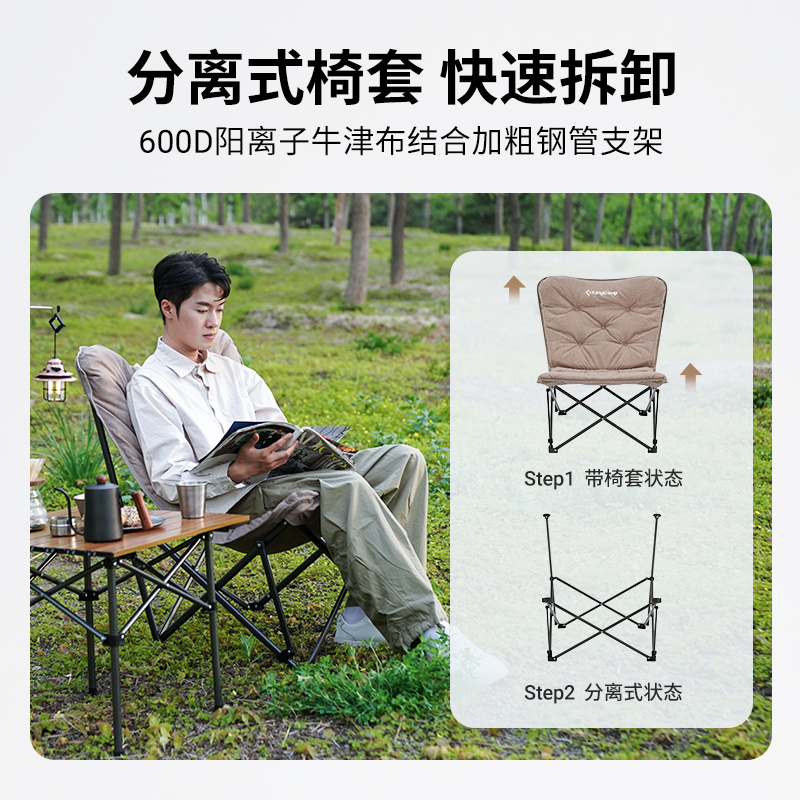 天猫KingCamp蝴蝶椅夹棉户外家用折叠椅便携钓鱼椅子露营椅懒人月亮椅