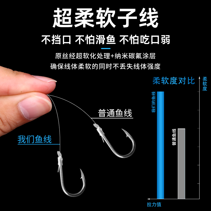 淘鹤渔人朝天钩七星漂线组双钩正品圆柱免调漂金海夕鲫鱼专用钓鱼线