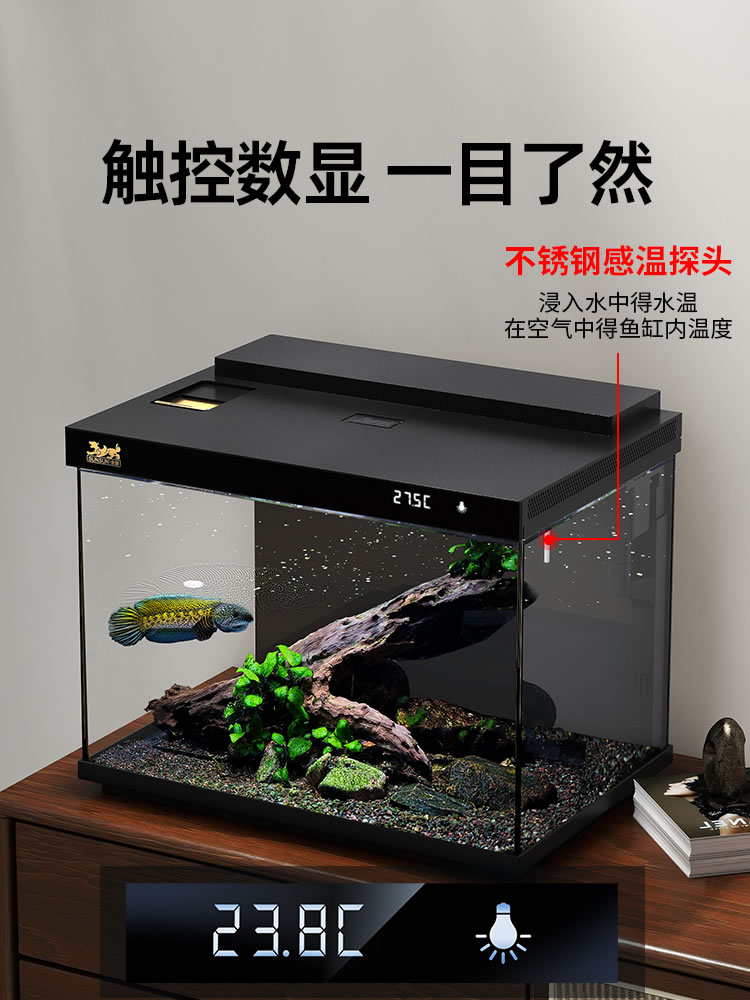 淘宝森森金麟超白玻璃鱼缸客厅小型免换水家用水族箱生态过滤制氧金鱼