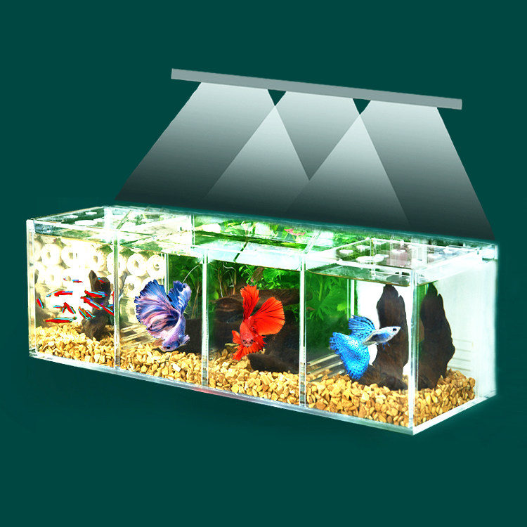 淘宝普通玻璃小型鱼缸方形水族设备金鱼缸造景观赏斗鱼联缸开放式隔离