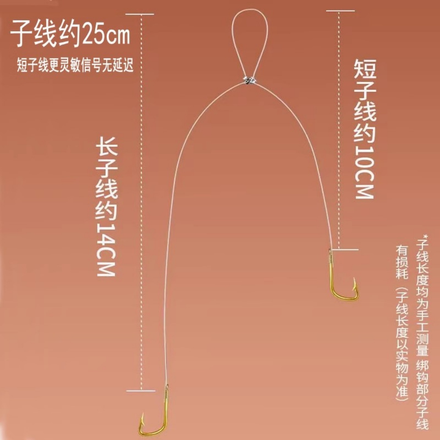 淘宝钓鱼用中短款25cm金袖有刺无刺鱼钩成品子线双钩袖钩野钓跑铅浅水