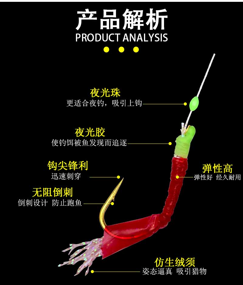 【五送一】红皮串钩鲈鱼钩海钓路亚仿生拟饵串钩翘嘴鲅鱼船钓串钩是一款优质钓鱼工具组合。该商品采用红皮设计,醒目醒目,易于识别。串钩设计可搭配多种钓具使用,适合不同场合的钓鱼需求。同时,该商品采用仿生拟饵技术,模拟真实鱼饵形态,增强诱惑力,有效提高钓鱼成功率。这款商品非常适合喜欢海钓和船钓的钓鱼爱好者使用,一次购买,多种用途,绝对值得一试!
