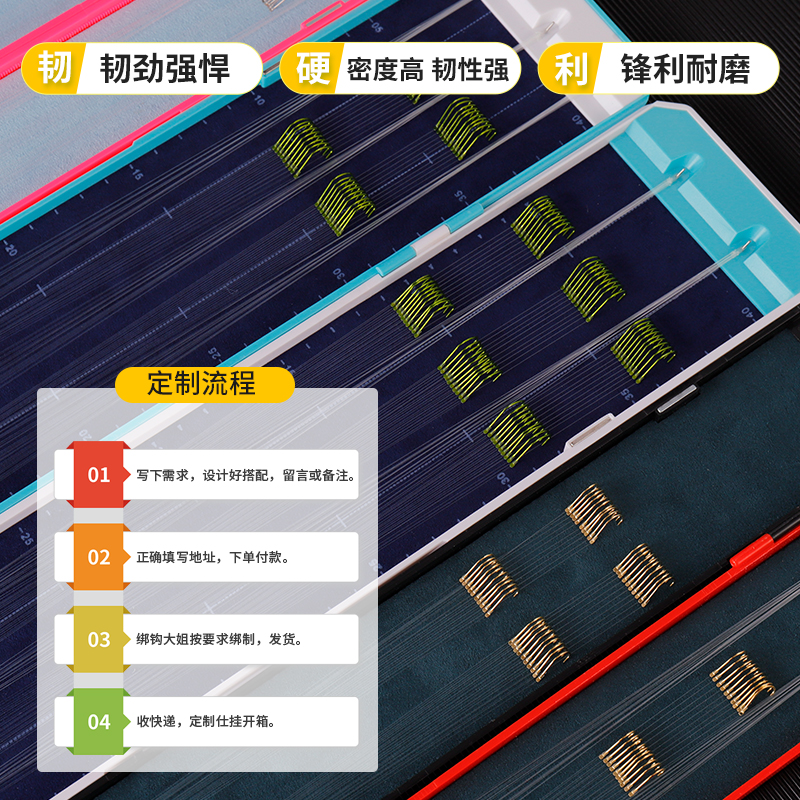 商品介绍:这款子线双钩成品钓鱼钩套装是一款高品质、全定制的产品。采用进口线组,绑好的鱼钩质量上乘,金袖和伊势尼全套设计,使钓鱼更加便捷高效。其特点在于钩尖锋利,抗腐蚀性强,能承受更大的拉力负荷,适用于各种水域和钓鱼场景。这款商品是钓鱼爱好者的理想选择,无论是在池塘、河流还是海洋垂钓,都能帮助您轻松捕获目标鱼类。专业的钓鱼体验,从这款优质子线双钩套装开始。